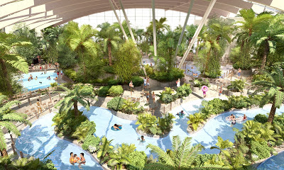 Woburn Forest will have the largest Subtropical Swimming Paradise in the UK with lots of exciting new features. The new shape has been revealed as a clam rather than the classic dome, pyramid or butterfly shapes at other UK Center Parcs. The clam will be nestled within the forest landscape with stunning views through the enormous glazed fascia.